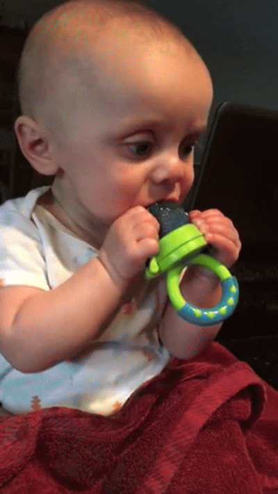 So I have very mixed feelings on these but overal would probably repurchase. Pros: - Baby LOVES these for his sore gums. I’ve used frozen blueberries and fresh strawberries in them. - They don’t accidentally open during use - the handle is easy for baby to hold and grippy which he likes. - pack of two in case one hits the floor - easy to clean out with a garbage and soapy water. - baby loves sucking the fruit juice out.