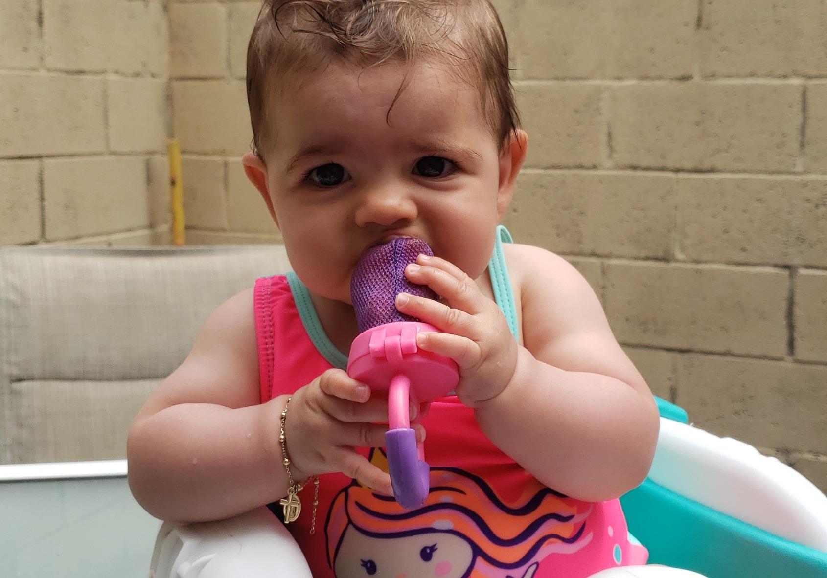 Yes! The soft, BPA-free silicone is gentle on sore gums and doubles as a teether. You can even add frozen fruit for extra soothing relief.