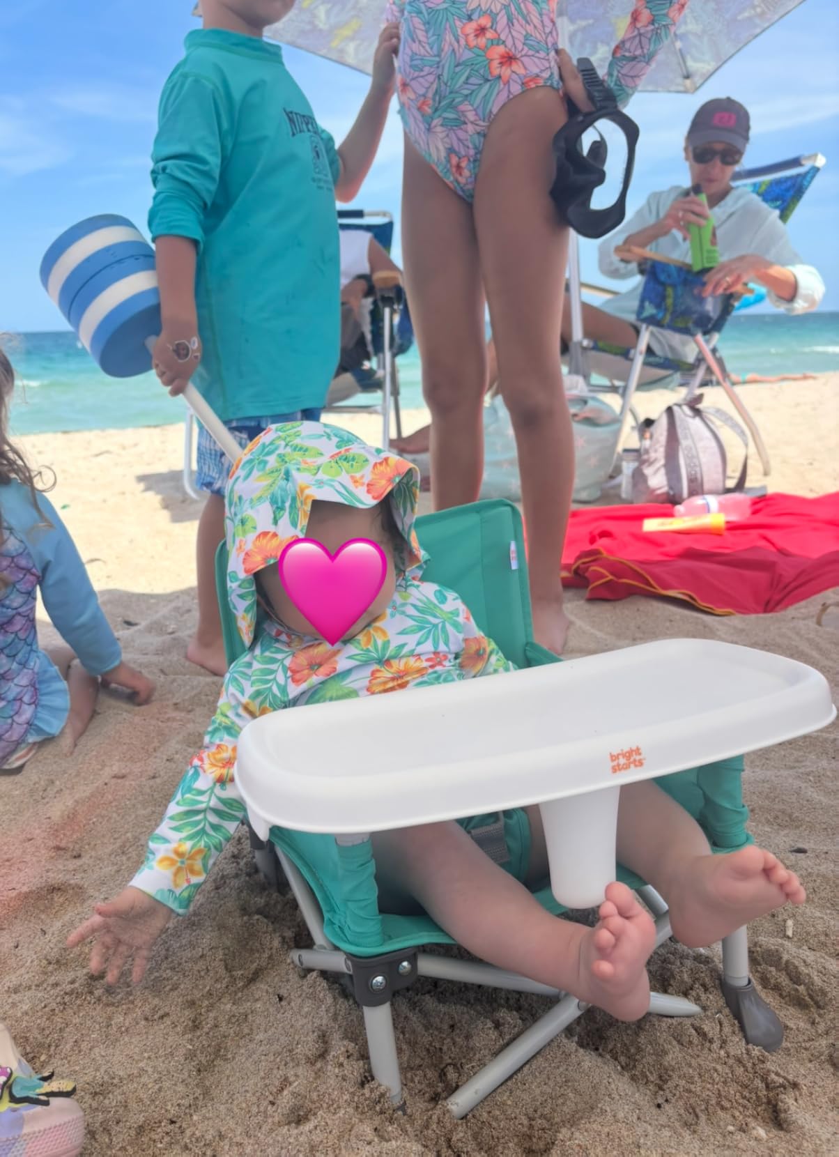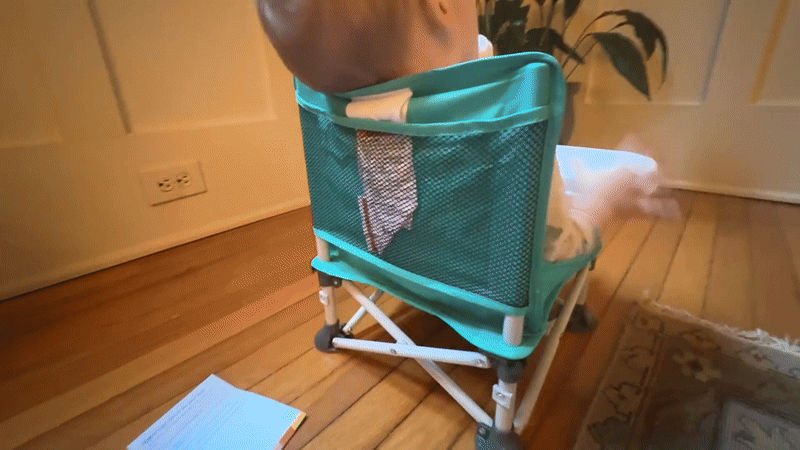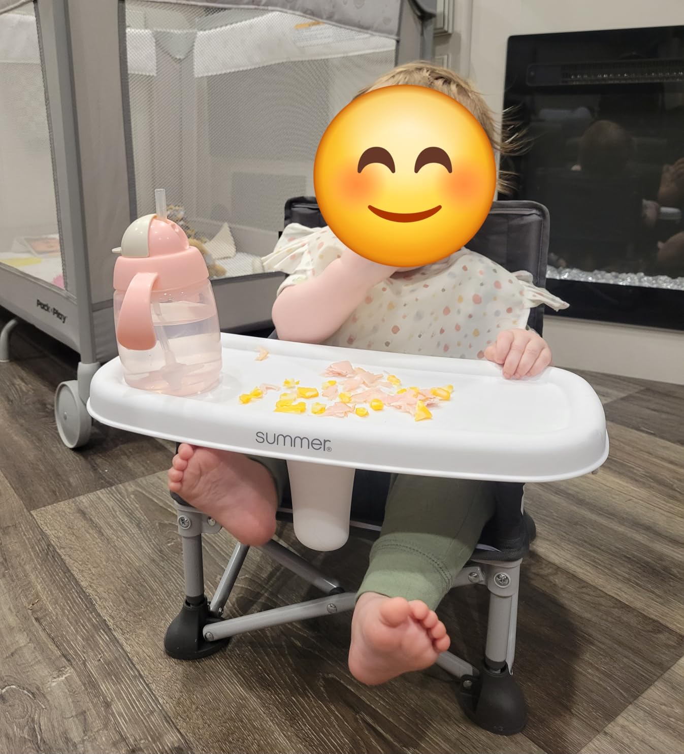 We packed it up and brought it to our beach dinner! It fits easily in a bag and folds compactly. Cleanup is a breeze—even with sand and sticky snacks. My toddler feels right at home wherever we go.