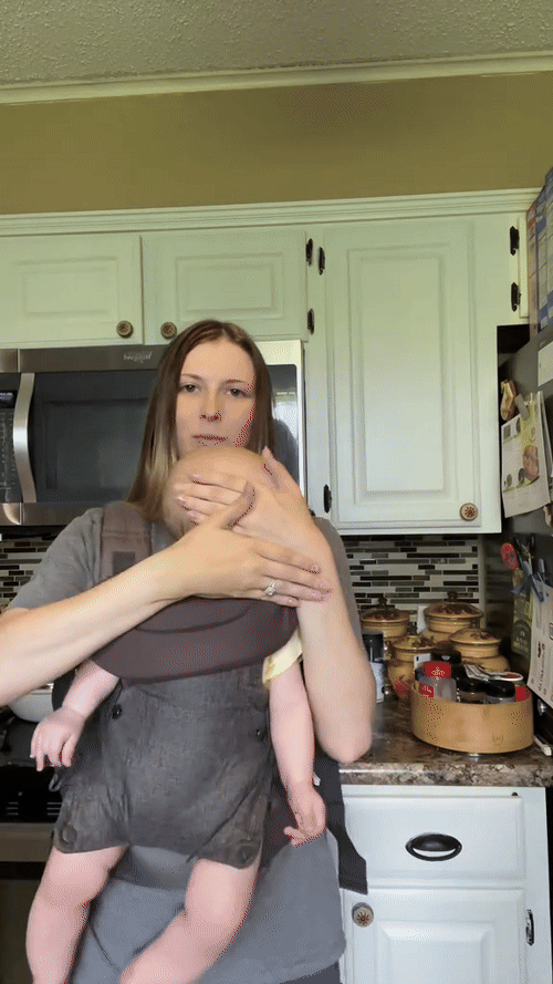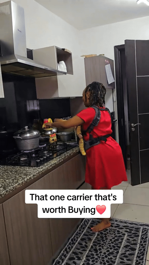 See how this mom multitasks effortlessly—baby snug in the carrier while whipping up delicious meals hands-free!
